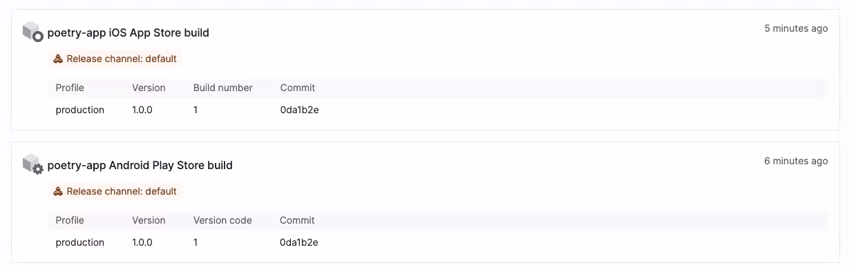 Builds page at https://expo.dev/