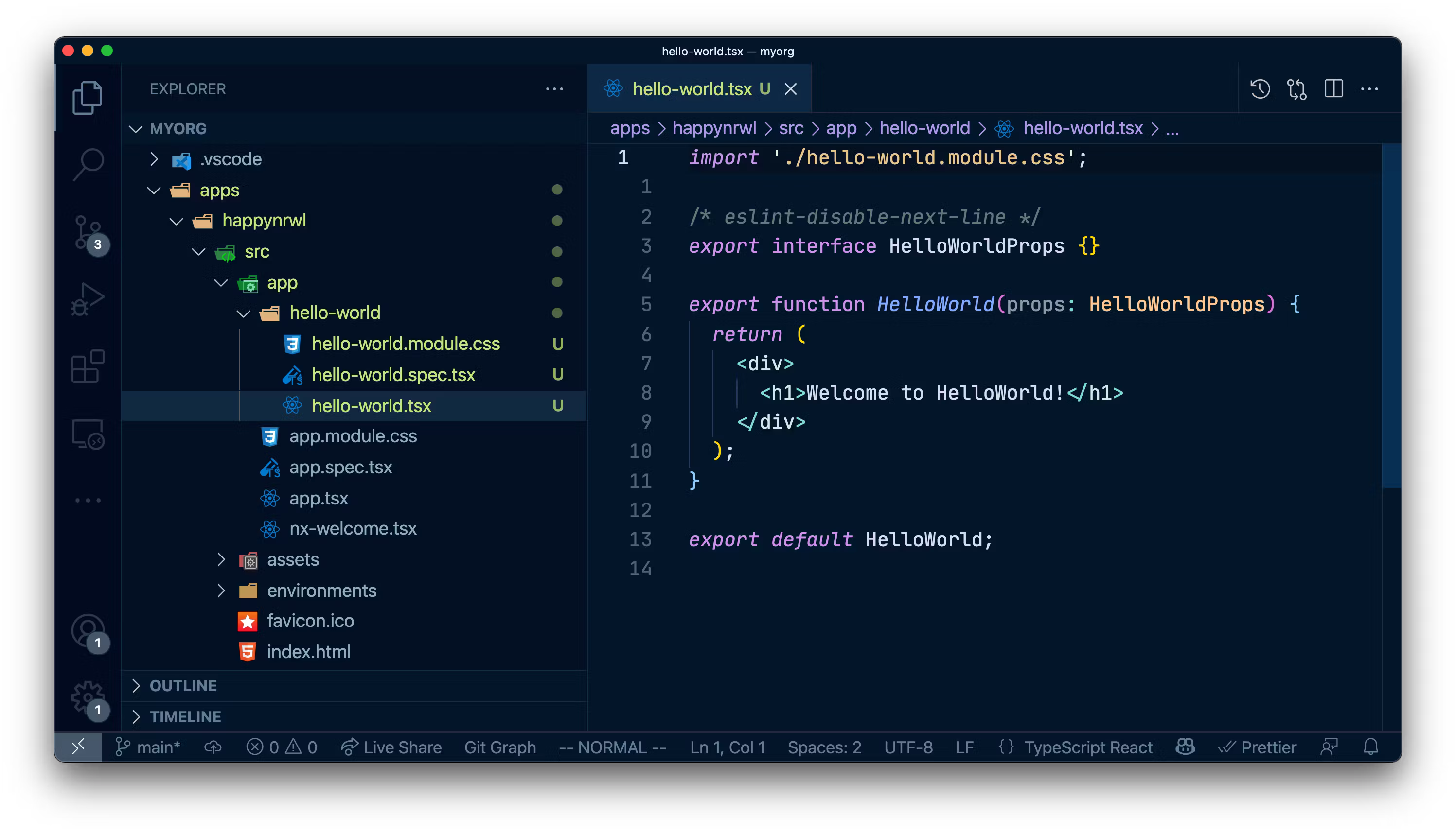 You should end up with a new Nx workspace and our happynrwl React app in the apps/ folder.
